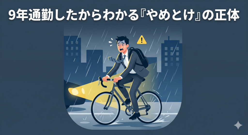 「ロードバイク通勤はやめとけ」と、始める前に言われたことがあります。 危険だから。雨が大変だから。汗の問題があるから。 でも私は9年間、片道7km・年間走行距離7,500〜8,000kmで通勤を続けています。 結論から言います。 「やめとけ」は間違いです。...