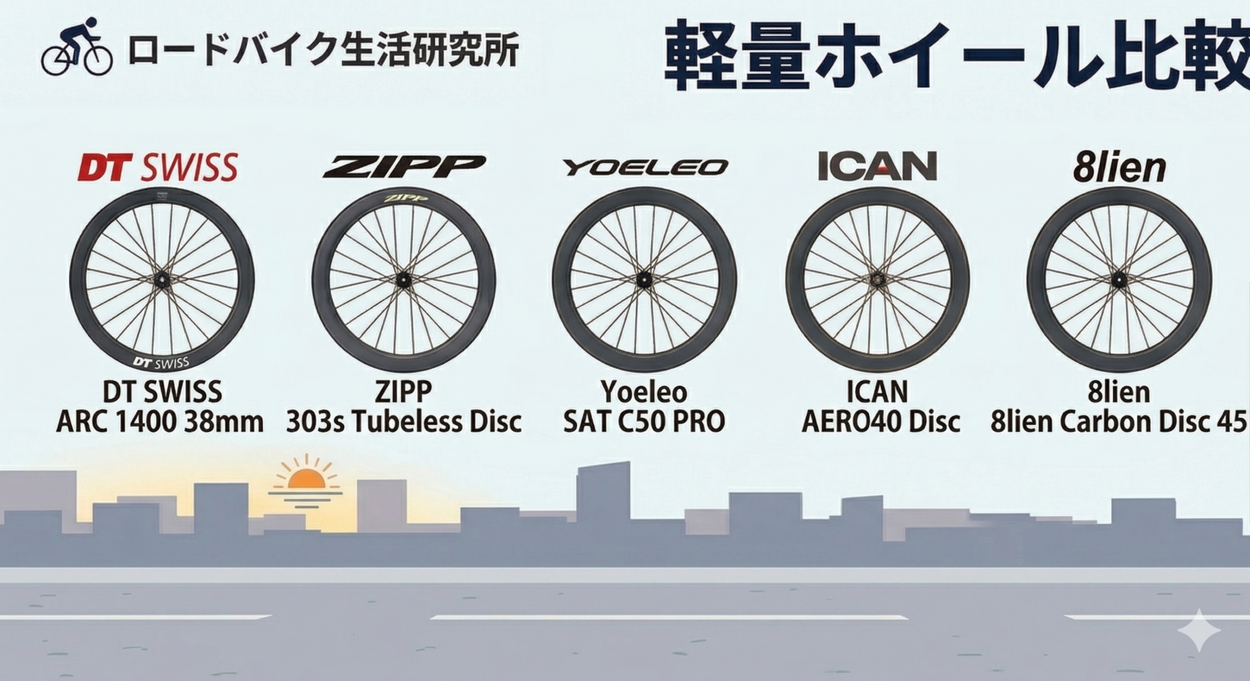 ただし、レース専用に買う気はありません。レース後も通勤・週末ライドで使い続けることを前提に、コスパ・汎用性・ハブ性能を軸に6モデルを比較しました。
